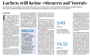 Dieser Antrag obsiegte klar mit ca. 75% zu 25% der Stimmen. Damit bleiben in Lachen im nächsten Jahr die Steuern unverändert.
